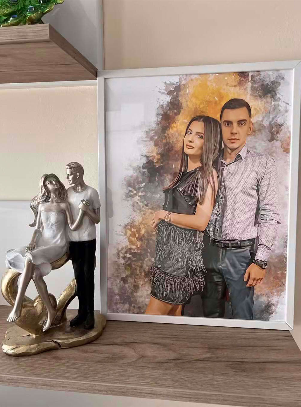 Освежете спомените си с уникален и стилно обработен дигитален портрет с висококачествен печат и хартия, създаден от нас. Поръчайте сега и се наслаждавайте на изкуството и красотата на вашия живот в невероятен дизайн!